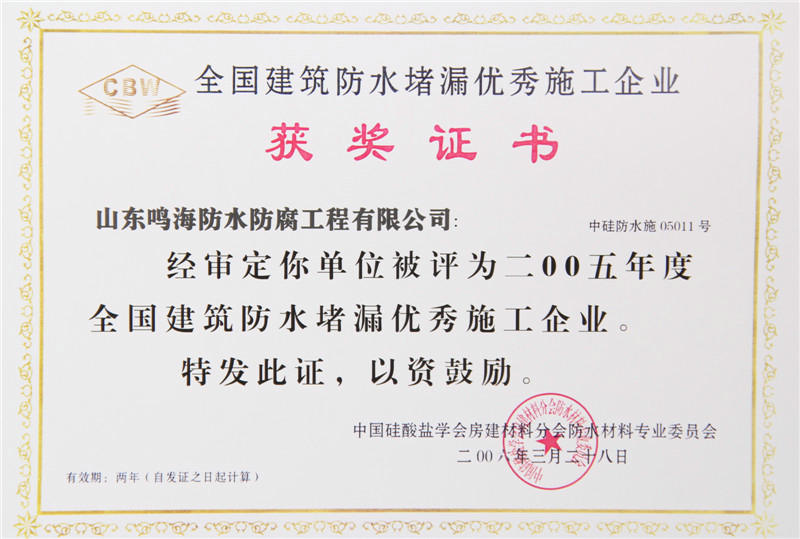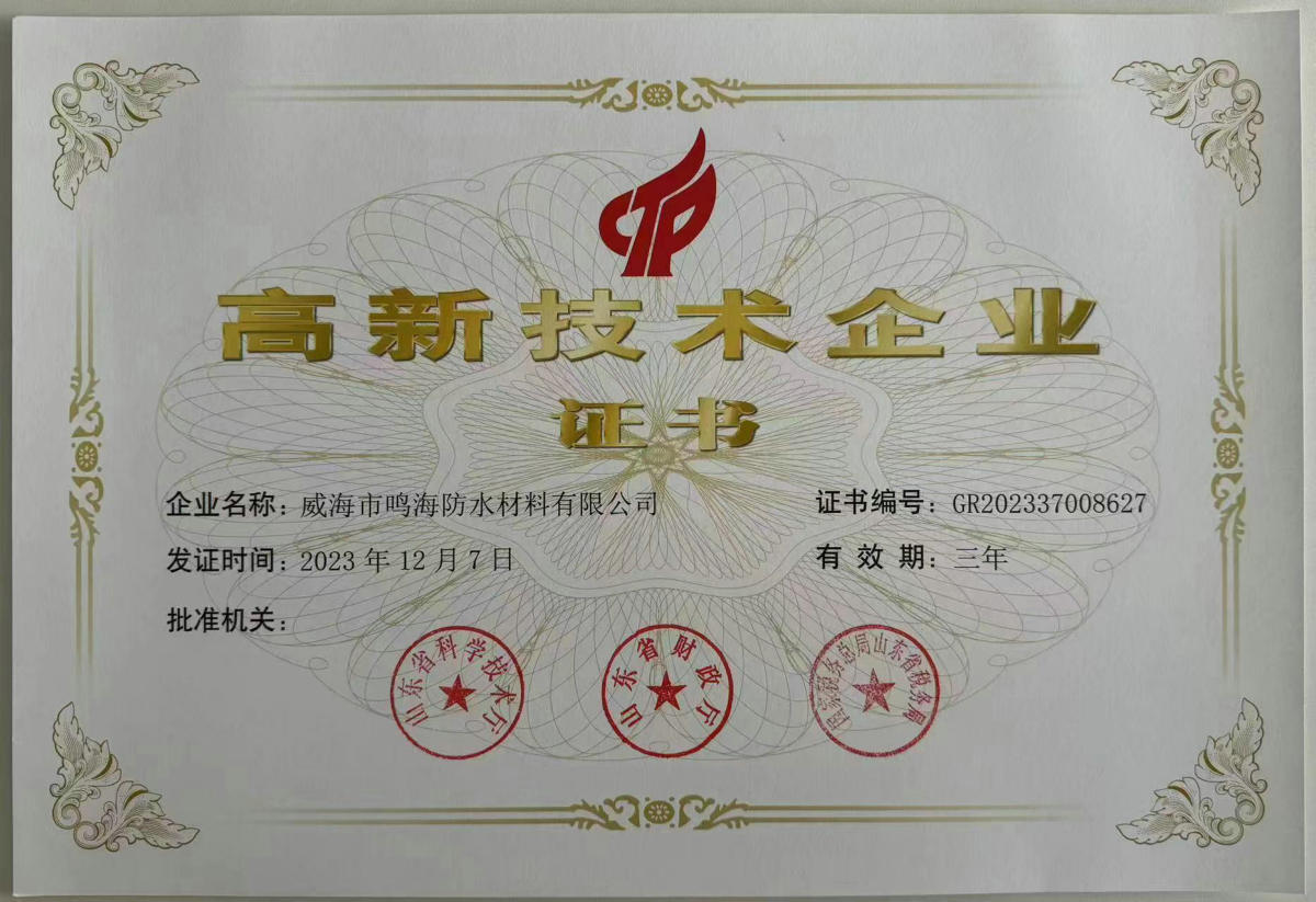 山東鳴海防水集團(tuán)有限公司是科工貿(mào)為一體的綜合性企業(yè),成立于一九九八年,下設(shè)三個(gè)子公司、一個(gè)分公司、五個(gè)辦事處,分別為山東宇鳴防水保溫有限公司、威海市鳴海防水材料有限公司、威海宇鳴新型材料有限公司,宇鳴科技有限公司是中國(guó)建筑協(xié)會(huì)理事單位,連年評(píng)為企業(yè)誠(chéng)信單位。在全國(guó)成立了多個(gè)辦事機(jī)構(gòu),分別為新疆、銀川、蘭州、青海、青島、大連、濰坊、北京等多個(gè)城市。