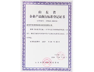 企業(yè)產(chǎn)品執(zhí)行標(biāo)準(zhǔn)登記證書